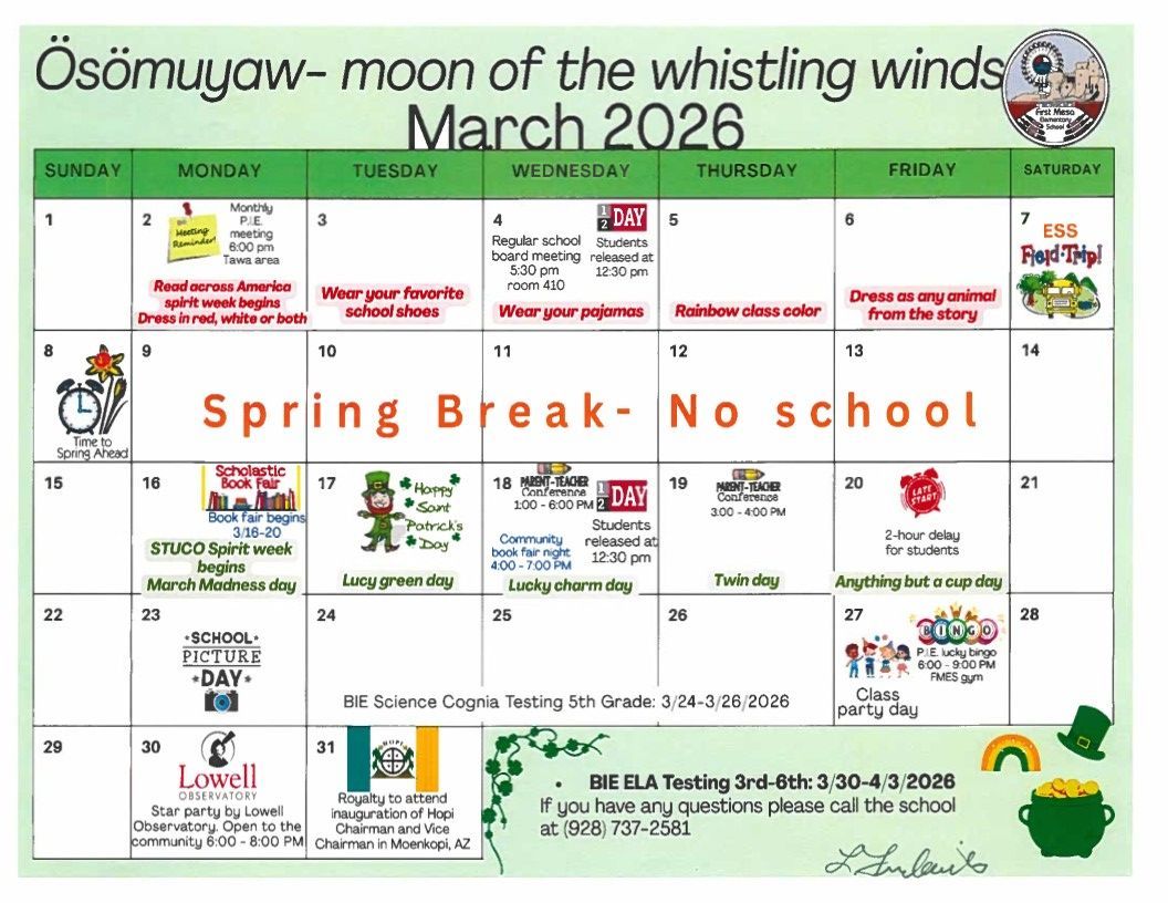 A welcoming letter from the Principal of First Mesa Elementary School. You can click on this link to see. Thank you!